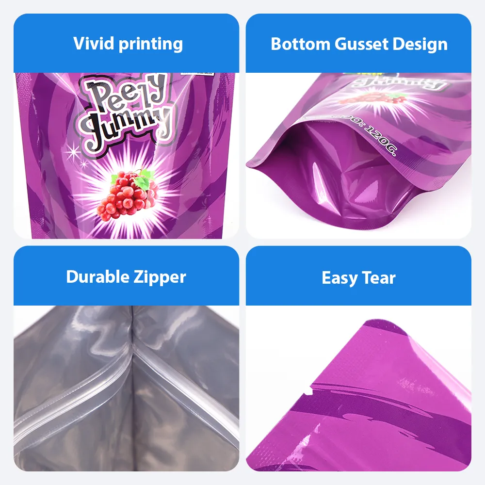- Zipper Design – This foil candy packaging pouch with a zipper allows consumers to easily open and reseal the bag, helping keep candy fresh after opening.