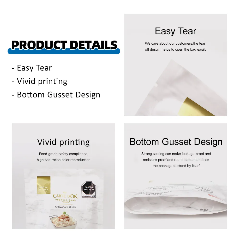 - Custom Printed Packaging bag – This custom rice cereal packaging bag supports OEM and private label services, including custom logo printing, pouch size, thickness, and material structure, helping brands build a professional and competitive product image.