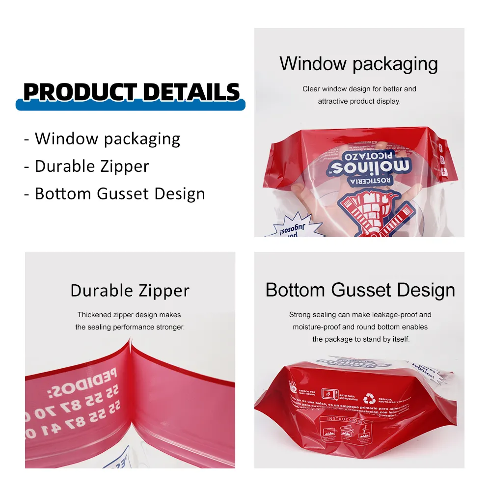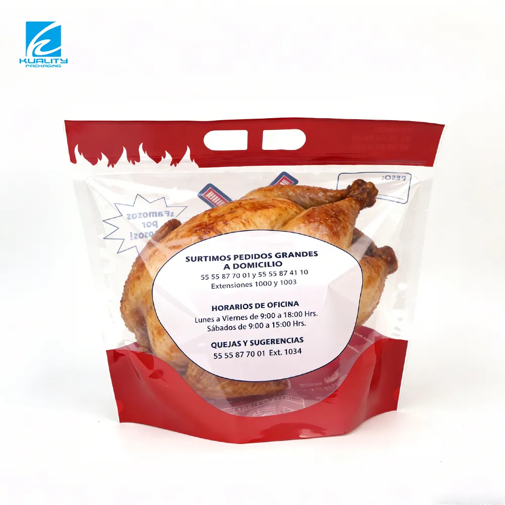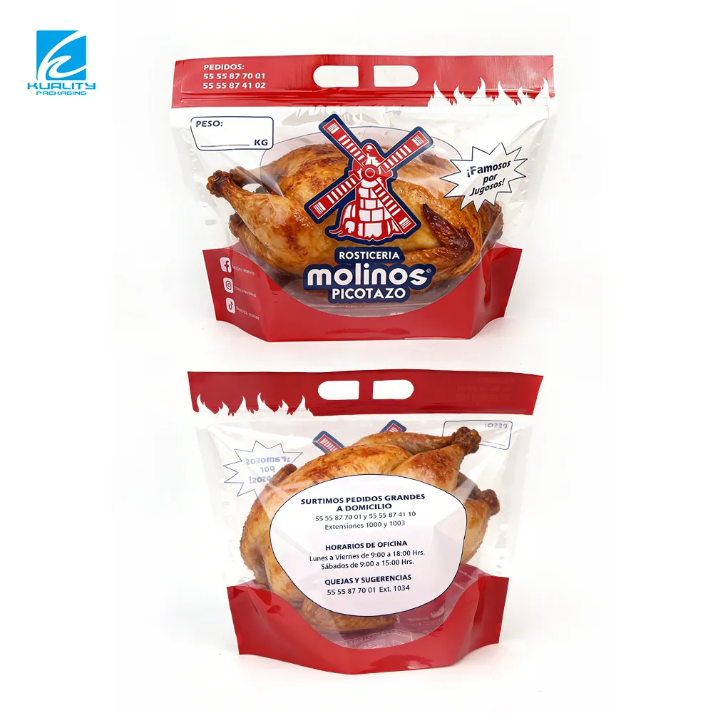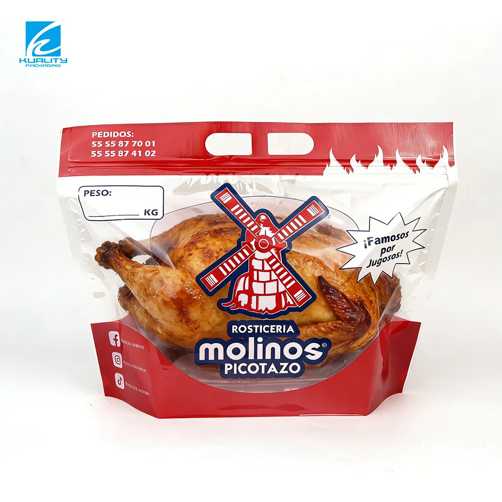 - The stand up pouch with a window design allows customers to clearly see the roast chicken inside the packaging bag, increasing buyer confidence and retail appeal.