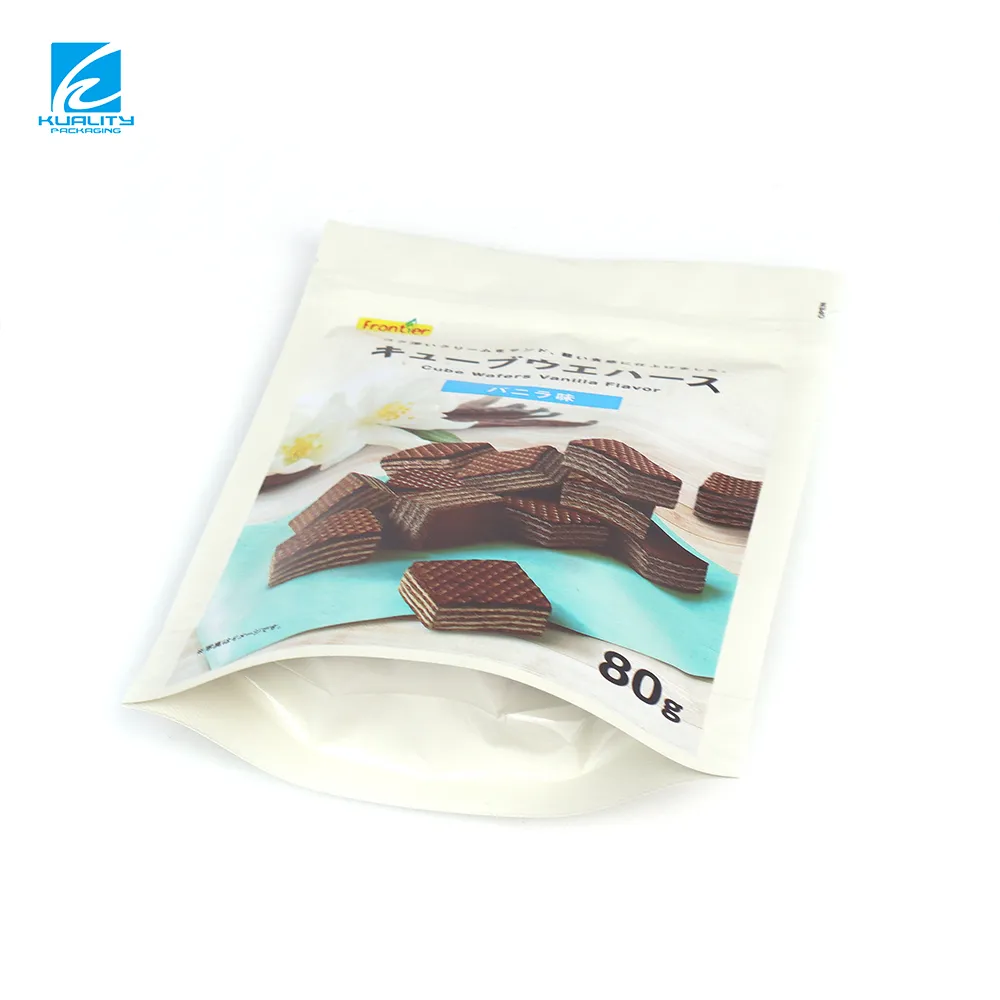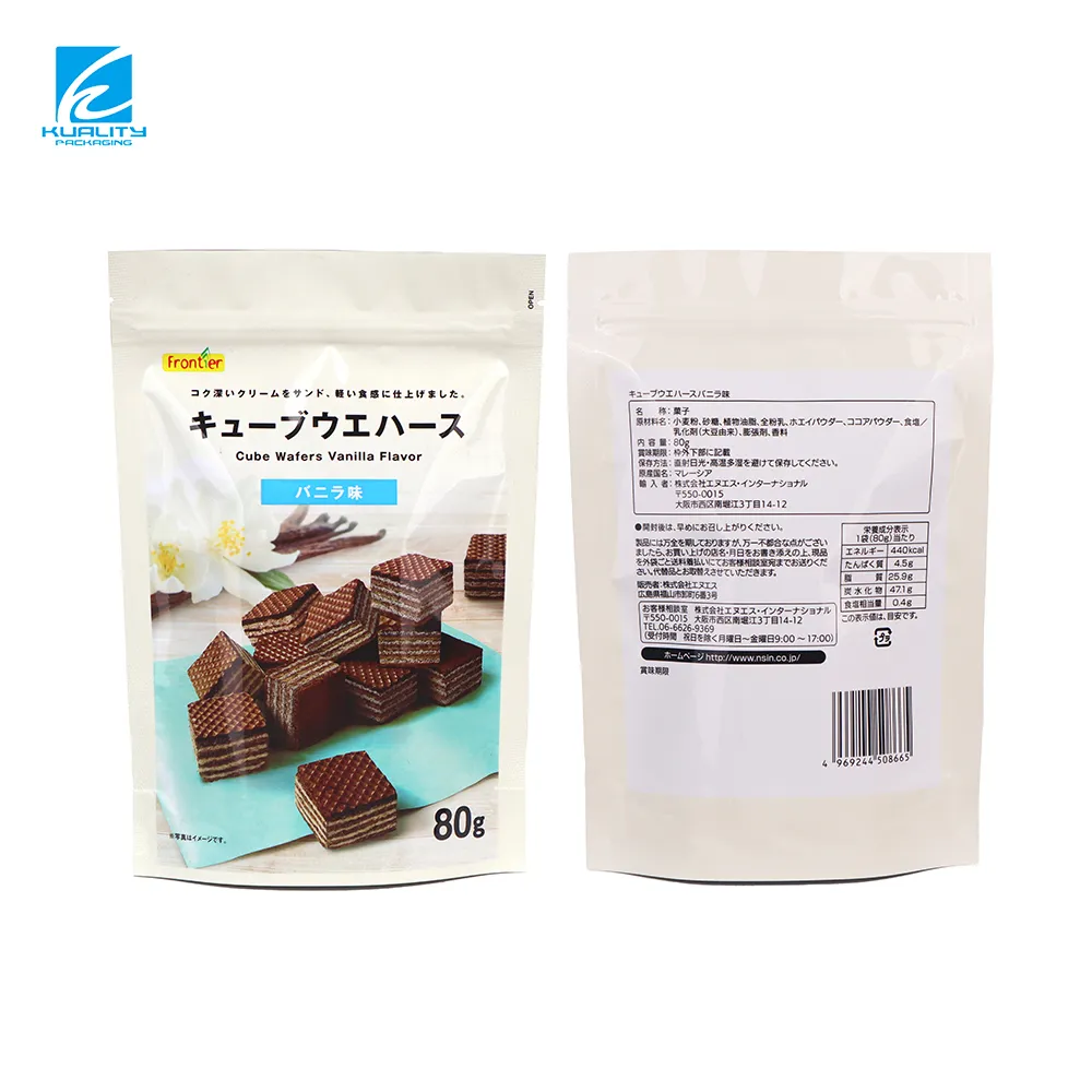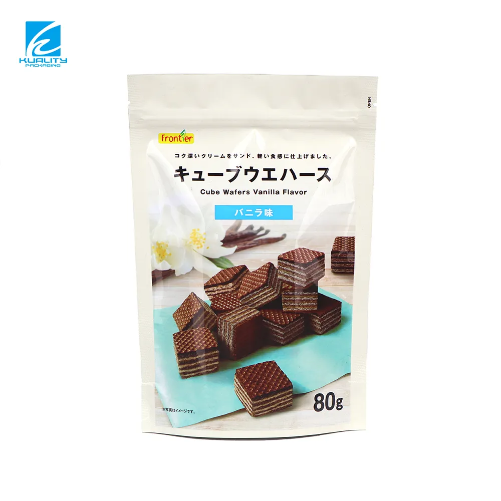 Welcome to work with a professional supplier of custom wafer snack packaging bags. Our aluminum foil stand up zipper pouches provide excellent barrier protection to keep wafer snacks crisp and fresh. Ideal for snack brands and OEM manufacturers seeking durable, customizable, and high-quality packaging solutions. Contact us today for a fast quote.