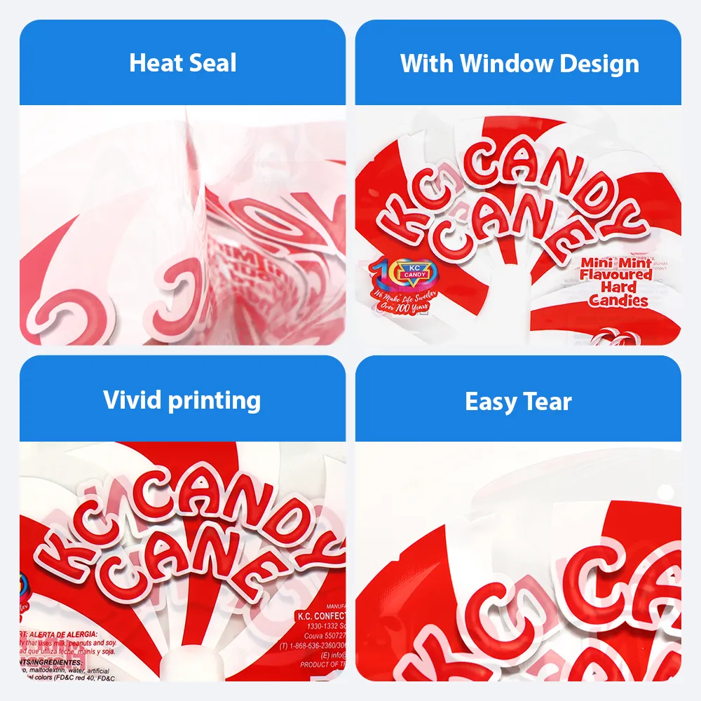 - Produced with eco-friendly plastic composite, the pouches balance durability with sustainability for modern candy packaging needs.