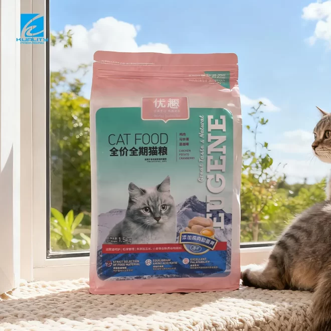 - Custom logo, artwork, and brand colors available for cat food packaging projects.