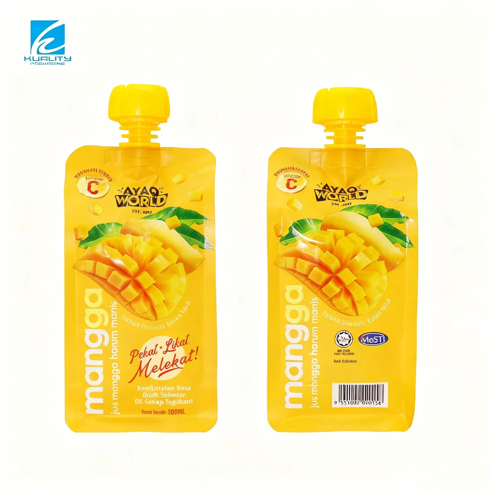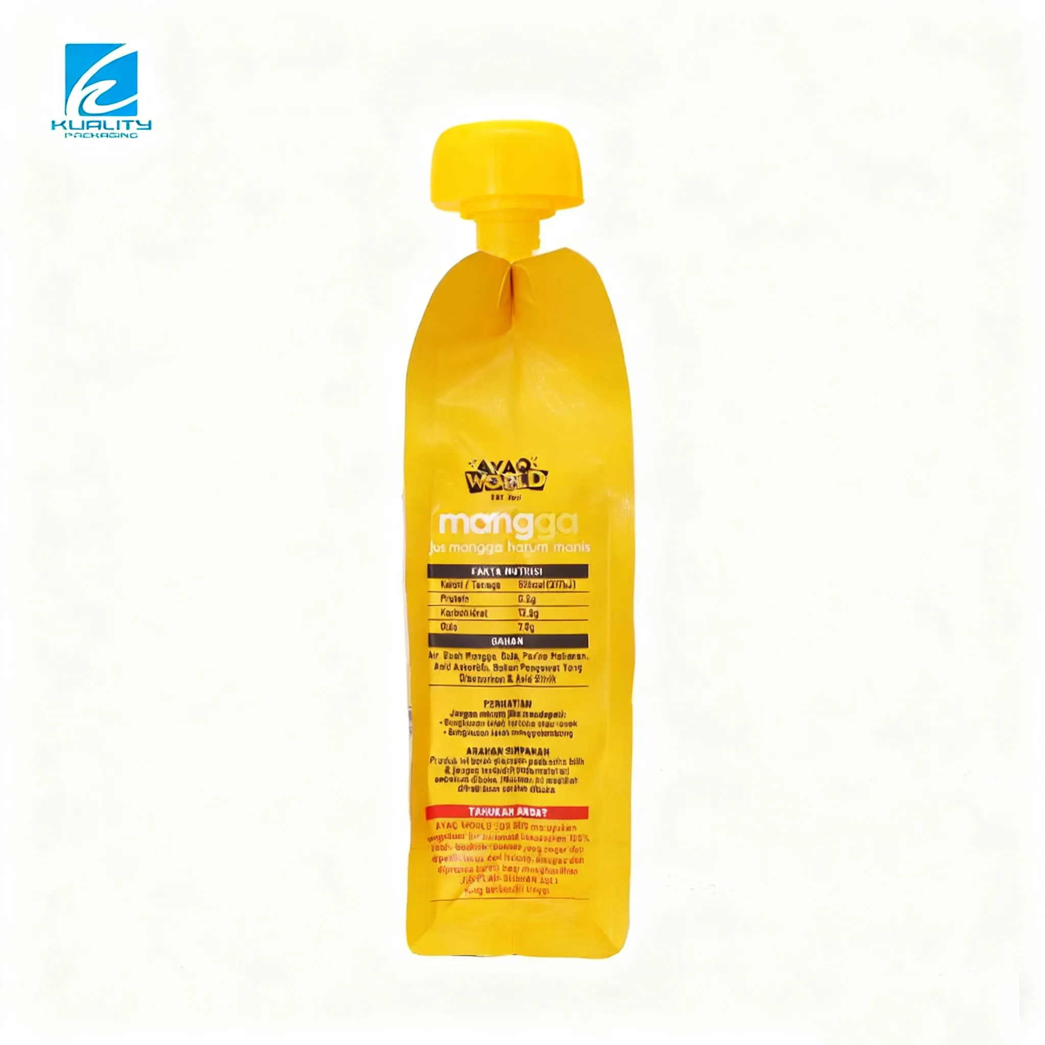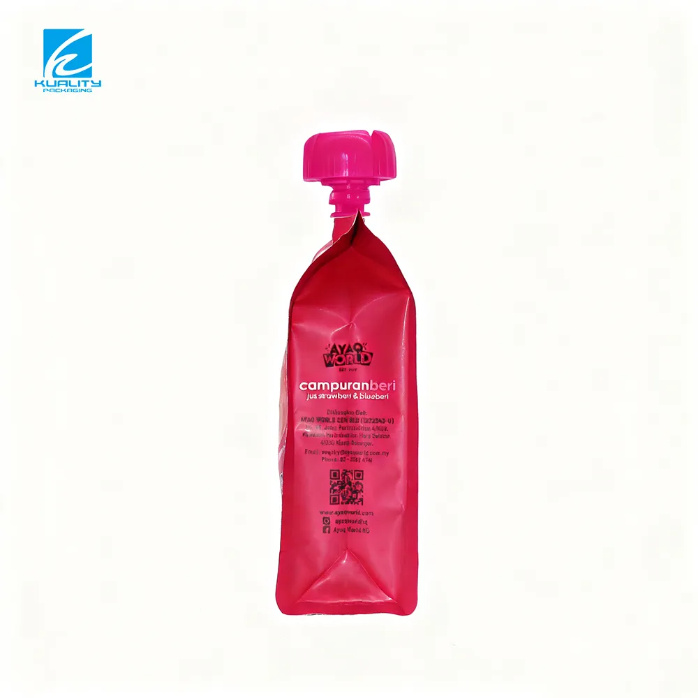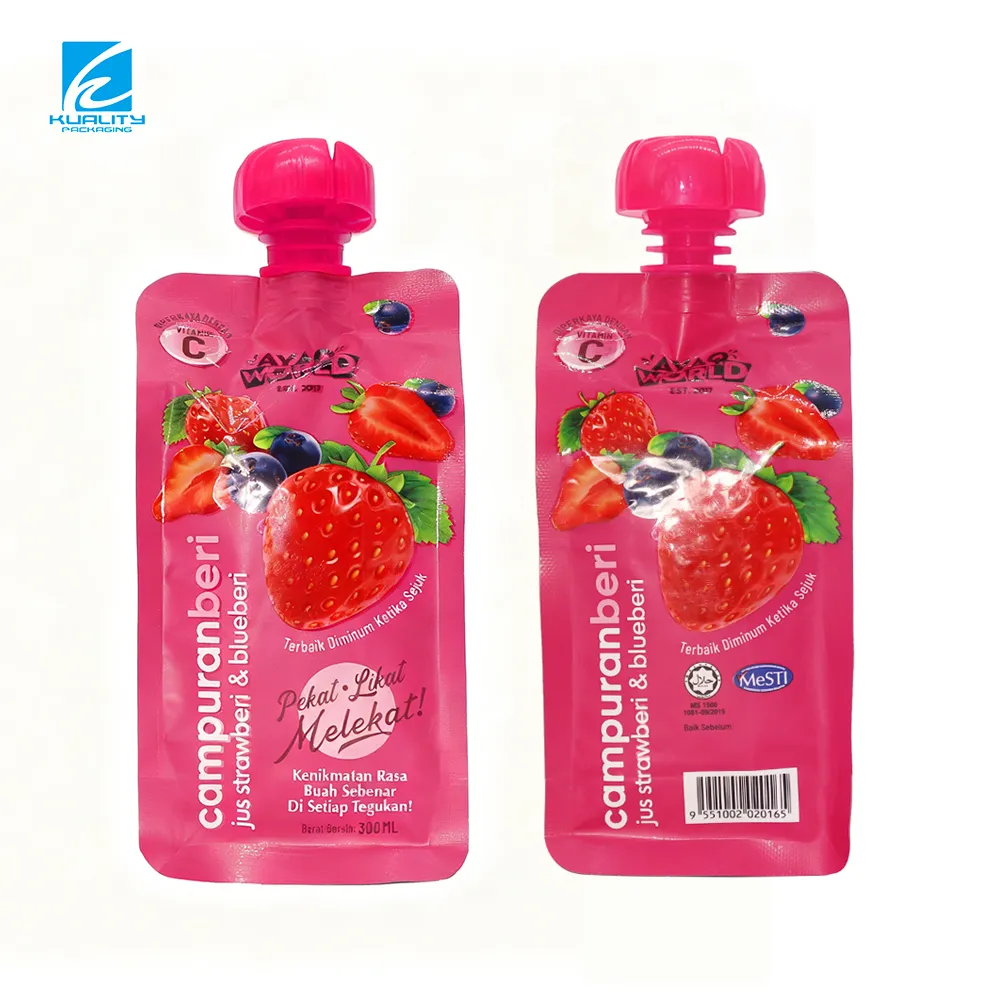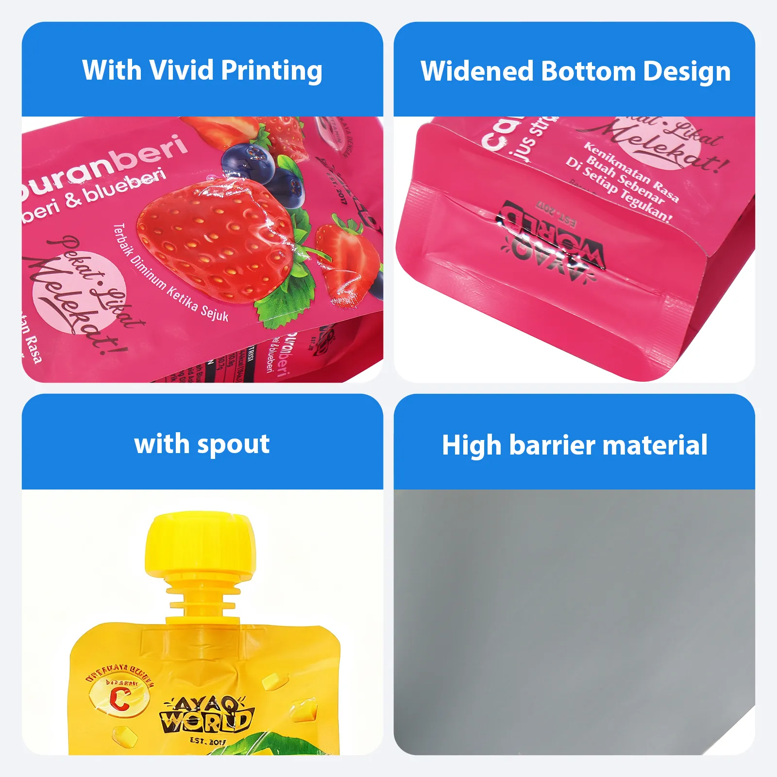 Bulk manufacturer-direct liquid spout pouch supply for juice. It is made of food-grade material to ensure that the liquid inside won’t be contaminated. And the leak-proof lamination allows this liquid spout pouch to travel safely in normal, even harsh logistics environments. Bulk supply and OEM/ODM services are available. Contact us now!