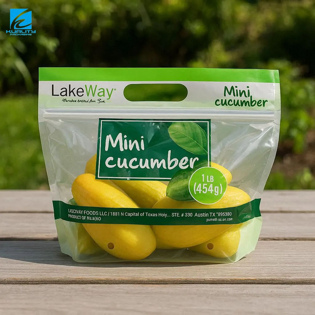 Custom Fresh Fruit & Veg Packaging Bags, Zipper Stand-Up Pouch with Tiny Vent Holes