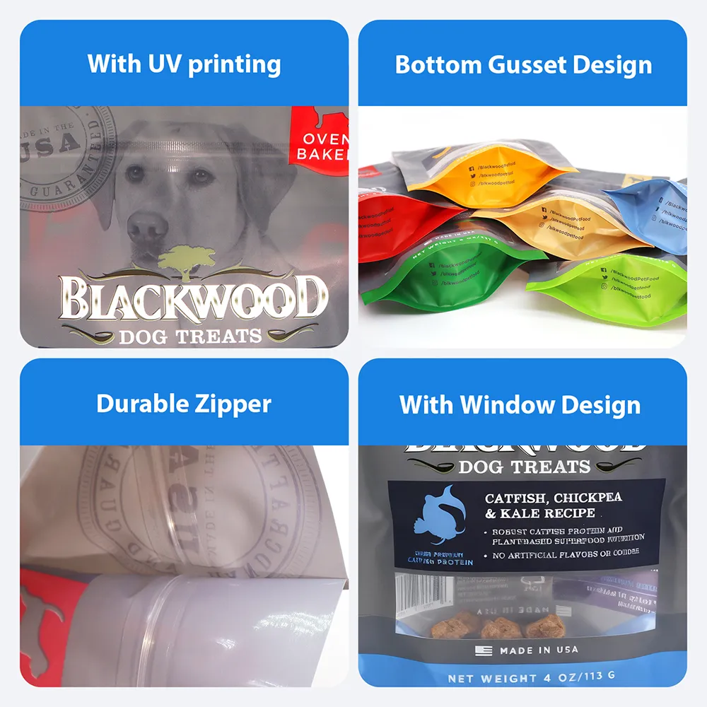 - Custom Printed with Logo:Custom printed dog food stand-up pouches with logo, artwork, and brand colors available.