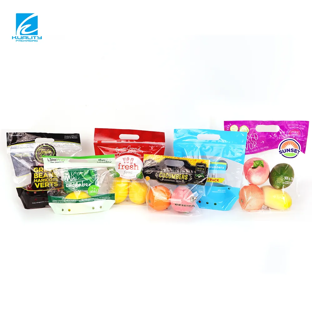 Custom Wholesale Vegetable Packaging Bags, Stand-Up Zipper Pouch with Perforated Vent Holes